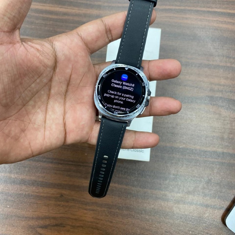 Samsung Galaxy Watch 8 Classic – 1.5" Super AMOLED Display – 1GB RAM – 16GB Storage – Wear OS – Stainless Steel Build – GPS – Bluetooth – Wi-Fi – NFC – 5ATM Water Resistance – Heart Rate, ECG, SpO2, Sleep Tracking – Long Battery Life.