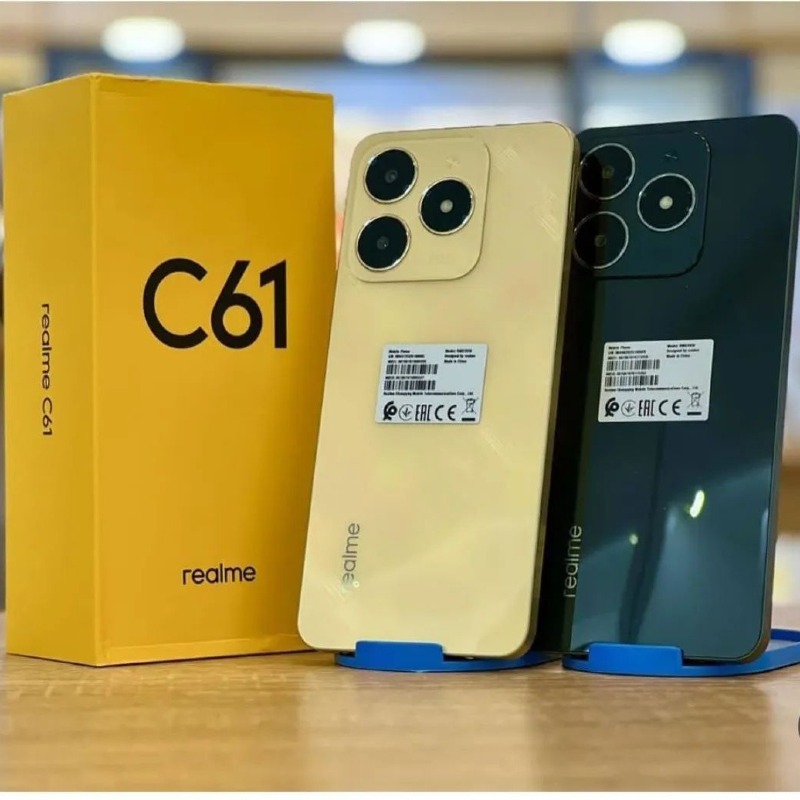 Realme C61 – 5000mAh – 256GB – 6GB – Android 14 (Realme UI) – 6.74" HD+ IPS LCD, 90Hz – 50MP Rear – 5MP Front – USB-C – 4G – IP54 – Side Fingerprint – Bluetooth 5.0 – Expandable Storage – 15W Charging.
